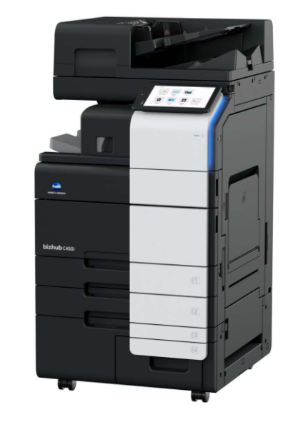 מכונת צילום משולבת צבעונית עם מדפסת וסורק צבע, מהירות 45 דף לדקה, 2 מגירות נייר 500 דף כ"א + ביי פס 150 דפים, הדפסה דו צדדית, אפשרות להוספת כרטיס פקס.
